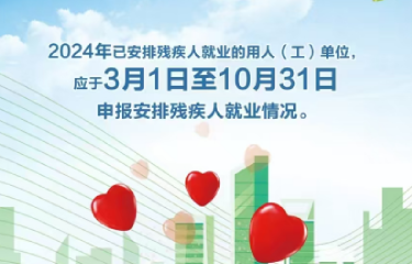 2024年已安排殘疾人就業(yè)的用人(工)單位,應(yīng)于3月1日至10月31日申報(bào)安排殘疾人就業(yè)情況。